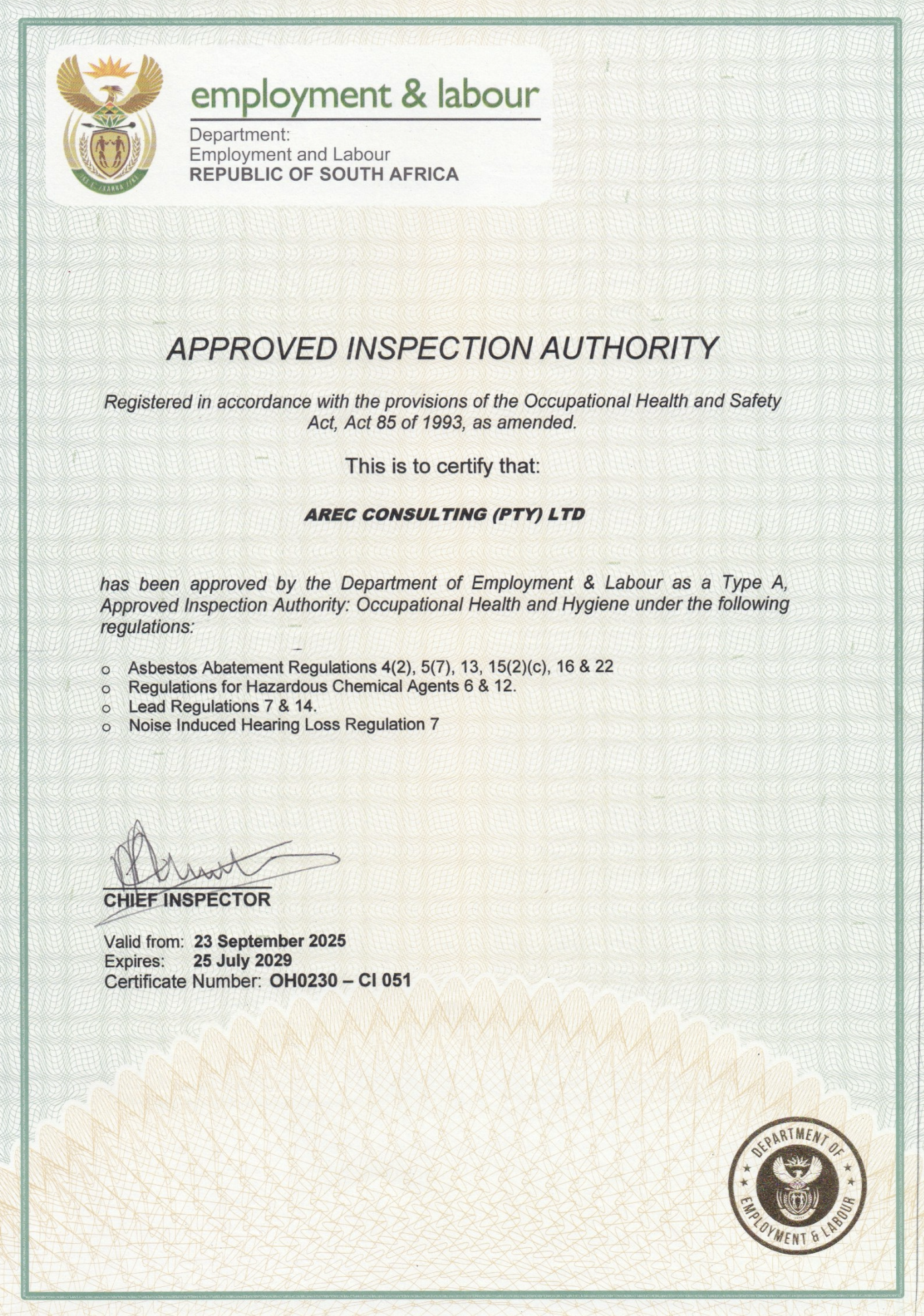 View the Department of Employment & Labour AIA Approval: